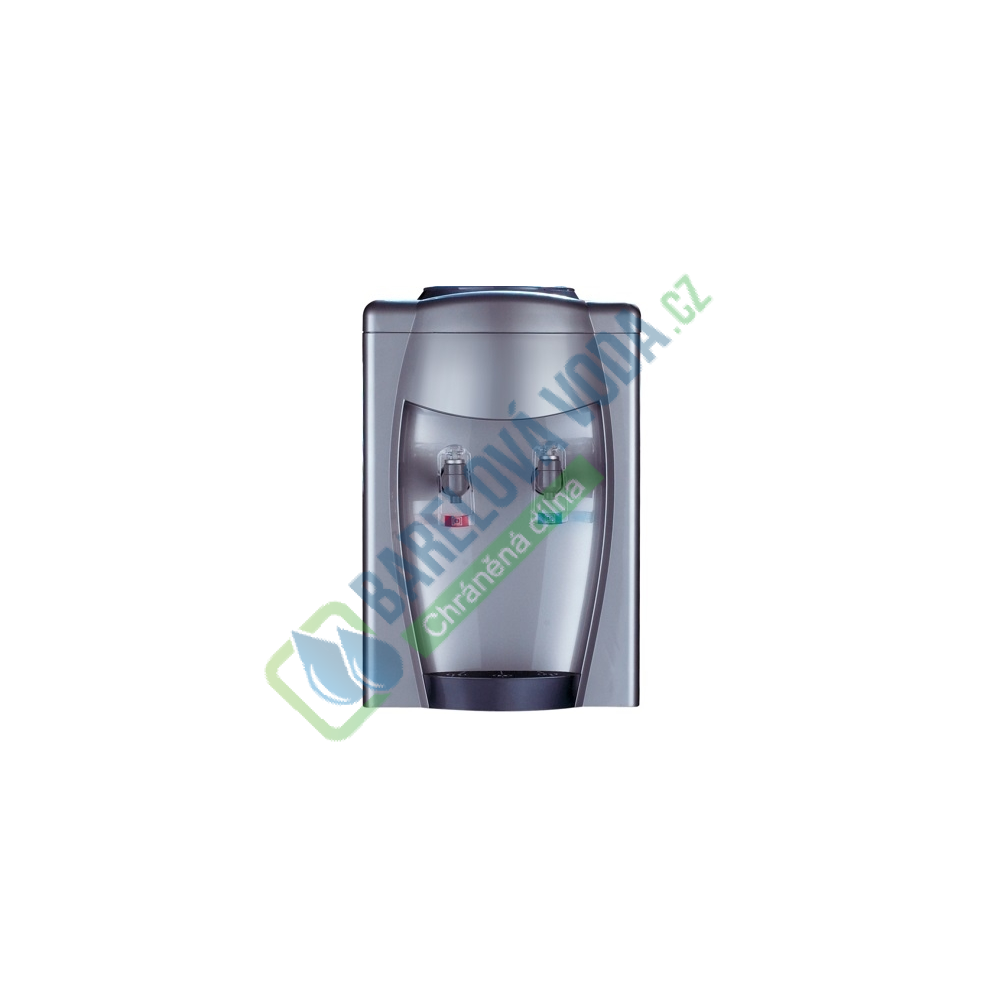 Stolní výdejník, aquamat, ve stříbrné barvě na studenou a horkou vodu určený k postavení na skříňku či stolek. Boky přístroje jsou ze stříbrného plechu a přední část ze stříbrného plastu. Na boční straně výdejníku se samostatně vypíná či zapíná ohřev a chlazení, takže je možnost při vypnutí ohřevu čerpat z červeného kohoutku vodu nechlazenou a používat aquamat k výdeji vody chlazené a nechlazené (pokojová teplota).