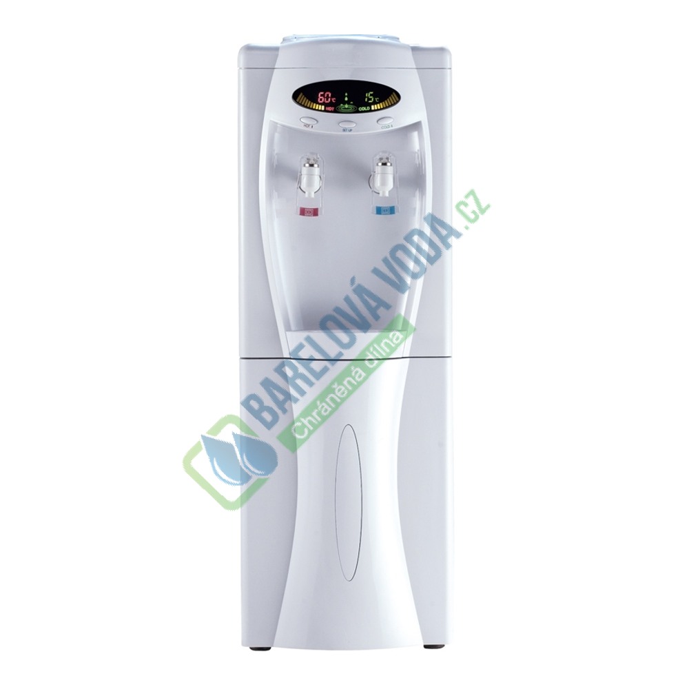Vysoký podlahový výdejník, aquamat, v bílé nebo stříbrné barvě na studenou a horkou vodu vybavený programovatelným elektronickým displejem, který ukazuje teplotu studené a horké vody. Boky přístroje jsou z bílého, stříbrného, plechu a přední část z bílého či stříbrného plastu. Na digitálním displeji lze vypnout či zapnout ohřev a chlazení, takže je možnost při vypnutí ohřevu čerpat z červeného kohoutku vodu nechlazenou a používat aquamat k výdeji vody chlazené a nechlazené (pokojová teplota). Je určený k postavení na zem. Uživatel má možnost si dle svého uvážení naprogramovat jak teplotu studené, tak teplotu horké vody.