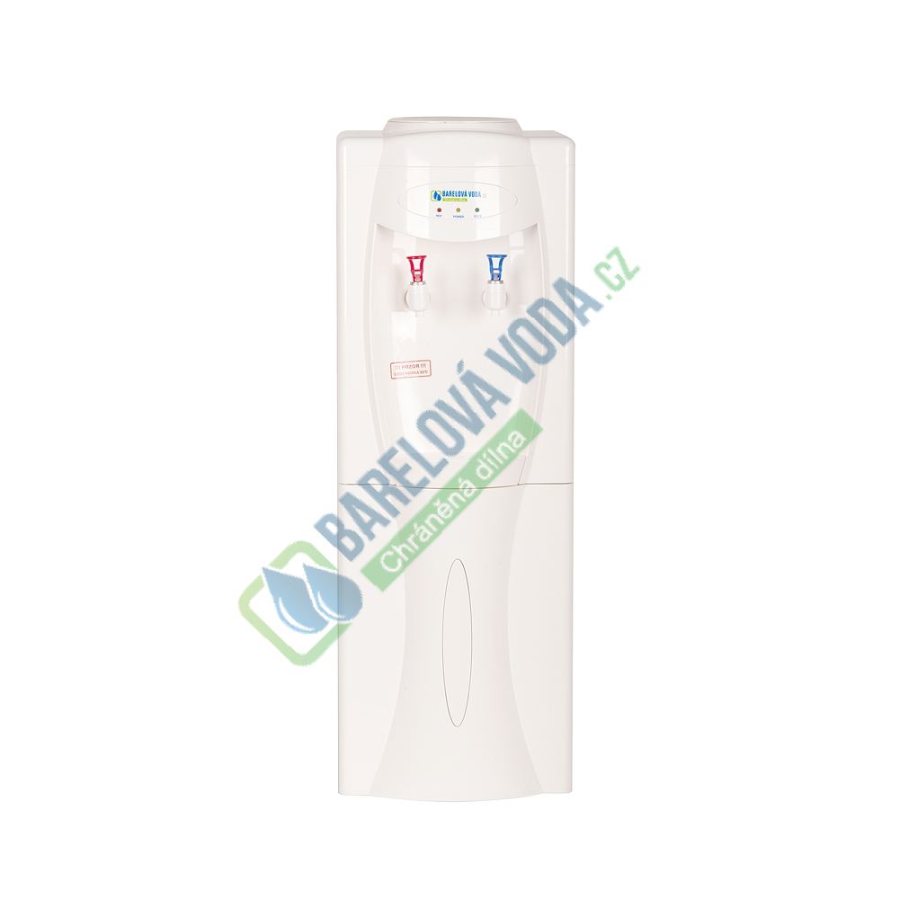 Vysoký podlahový výdejník, aquamat, v bílé barvě na studenou a horkou vodu určený k postavení na zem. Boky přístroje jsou z bílého plechu a přední část z bílého plastu. Na zadní straně výdejníku se samostatně vypíná či zapíná ohřev a chlazení, takže je možnost při vypnutí ohřevu čerpat z červeného kohoutku vodu nechlazenou a používat aquamat k výdeji vody chlazené a nechlazené (pokojová teplota).