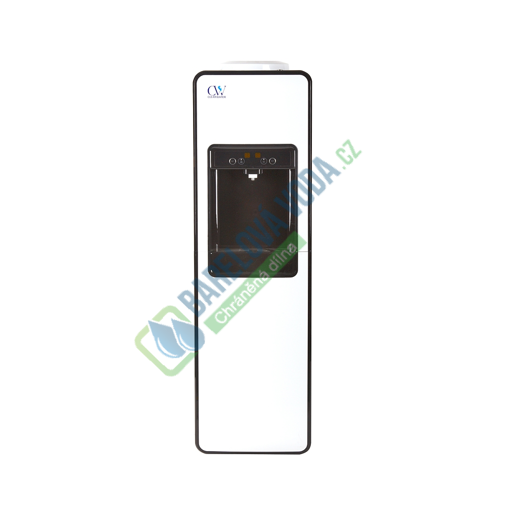 Vysoký podlahový výdejník v bílé na studenou a horkou vodu určený k postavení na zem. Na zadní straně výdejníku se samostatně vypíná či zapíná ohřev a chlazení, takže je možnost při vypnutí ohřevu čerpat z červeného kohoutku vodu nechlazenou a používat výdejník k výdeji vody chlazené a nechlazené (pokojová teplota).