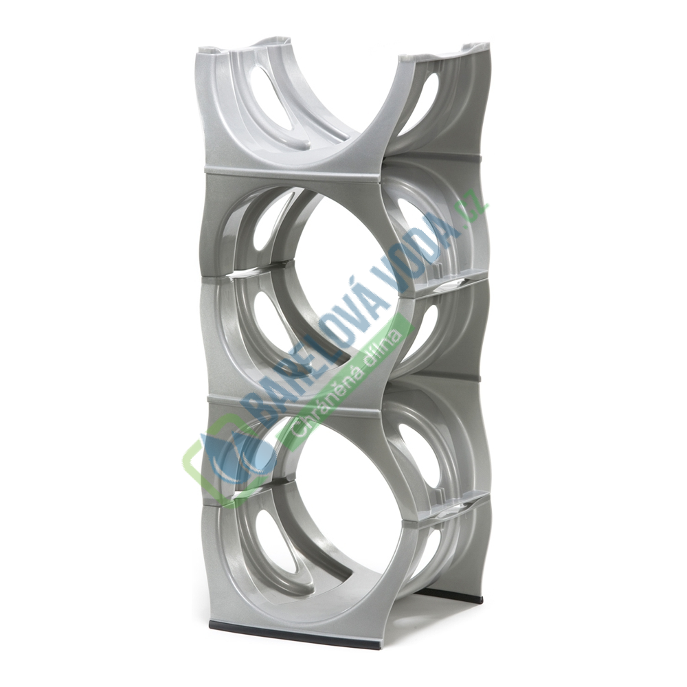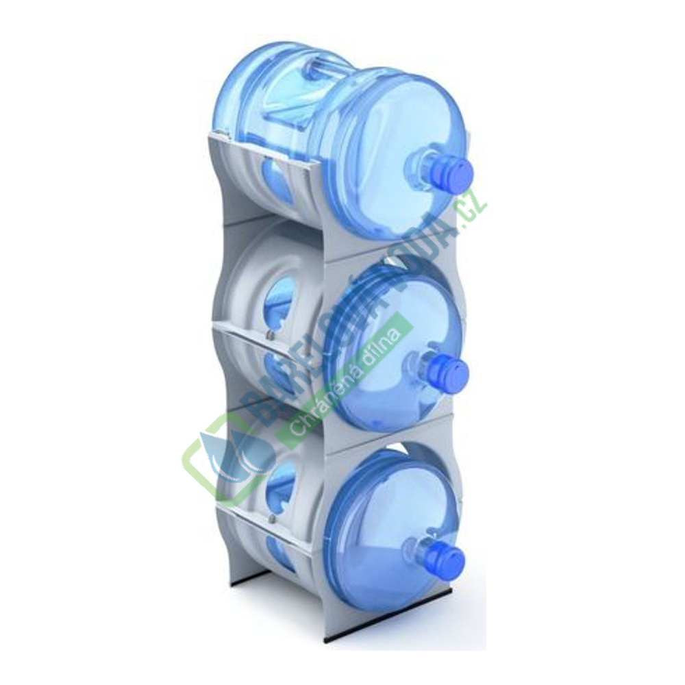 Světle šedý plastový stojan na barely. Jedná se o výrobek v luxusním provedení. Stojan může stát v interiéru vedle aquamatu, ušetří místo a máte k dispozici rychle vždy 3 nebo 4 náhradní demižony.
